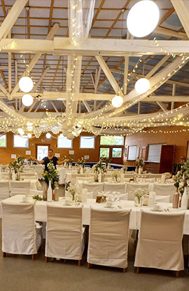 Feiere deine Traumhochzeit in unserer wunderschönen Festhalle! Wir bieten den perfekten Rahmen für deinen besonderen Tag – von stilvoller Dekoration bis hin zu maßgeschneidertem Catering.